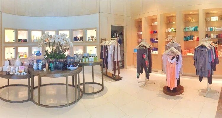 The waiting room in The Spa is fully stocked with merchandise from beauty products to women’s and men’s clothing.