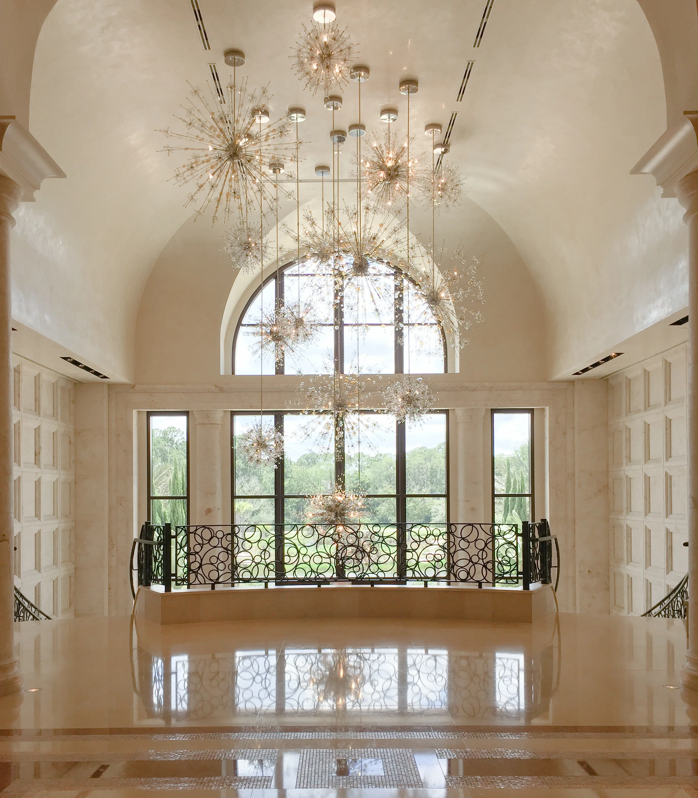 The beautiful interior design as soon as you step into the resort. The mosaic titles, swirl rails, and majestic fireworks chandeliers that overlooks the landscape sets the tone for this five-star resort and they work together beautifully to make a great first impression. This area is so photogenic and great for guests to take pictures with.